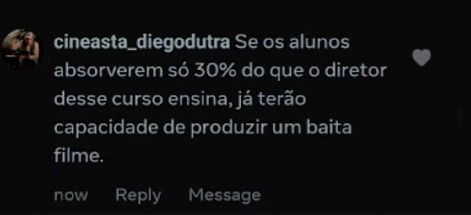 Se os alunos absorverem 30% do que o diretor desse curso ensina, já terão capacidade de produzir um baita filme.