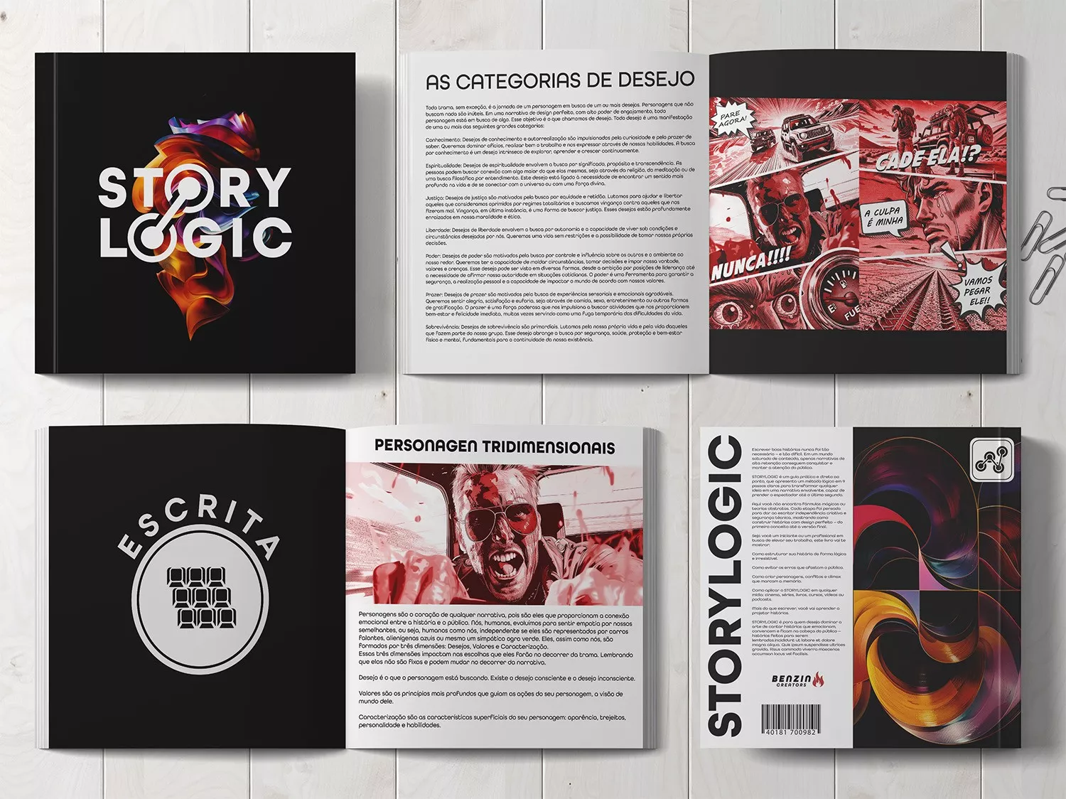 9 apostilas, explicando cada um dos passos de STORYLOGIC.